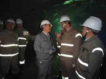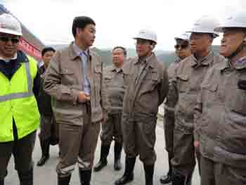 严金海同志一行深入到引水隧洞出口段TBM组装现场和断层破碎带人工钻爆施工掌子面,详细了解了工程建设进度、地质条件和安全生产、质量控制等各方面的情况,并听取了省引大局局长王海平、青海水电集团总经理王海青,以及施工、监理方负责同志的工作汇报。